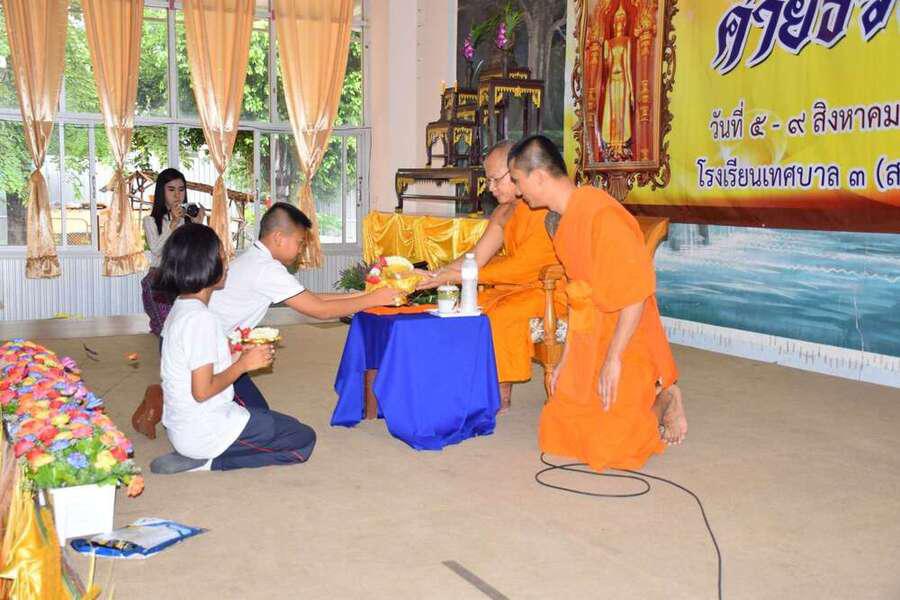 วันที่ 5สิงหาคม 2562 ท่านผู้อำนวยการธงชัย นนทสี เป็นประธานฝ่ายฆารวาส เปิดโครงการจัดการเรียนรู้กลุ่มสาระการเรียนรู้สังคมศึกษา และวัฒนธรรม ( ค่ายธรรมะ ) เรื่องการปฏิบัติตนเป็นพุทธศาสนิกชนที่ดี ซึ่งจัดโครงการตั้งแต่ วันที่ 5 - 9 สิงหาคม 2562 นักเรียนระดับชั้นอนุบาล - มัธยมศึกษา ณ ห้องประชุมโรงเรียนเทศบาล๓(สระกระเทียม) ## งานประชาสัมพันธ์โรงเรียนเทศบาล3 ## S:0