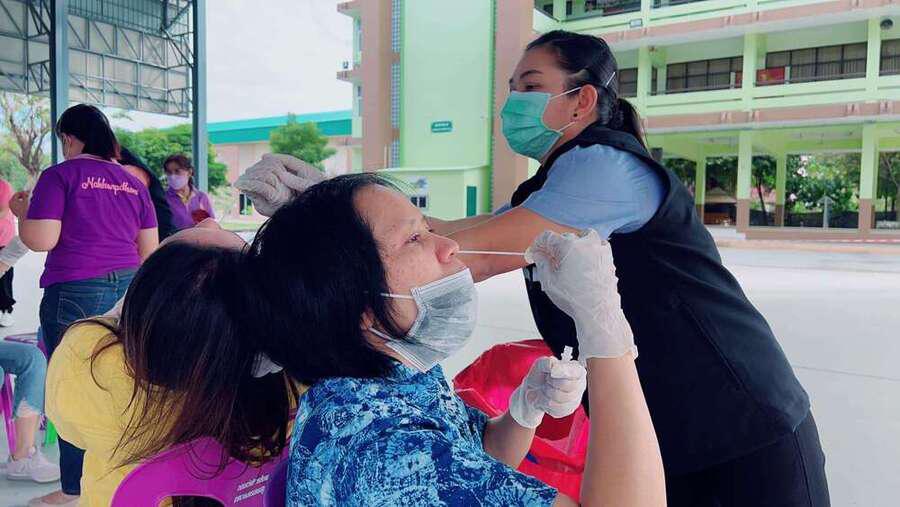 อบรมโครงการอบรมเชิงปฏิบัติการตรวจคัดกรองเชิงรุกด้วยชุด Antigen Test Kit (ATK)แก่บุคลากรในสถานศึกษาในพื้นที่อำเภอเมืองนครปฐม